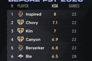 1-Inspired:KDA 8、比赛数22;