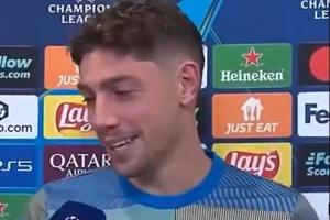 赛后发生了有趣的一幕,记者对巴尔韦德说道:我必须给你这个虚拟的东西,因为我没有金球奖在这,(向镜头展示手机屏幕)金球奖图,这是你的。