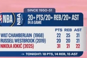 (1968年张伯伦拿到过22分25篮板21助攻,2019年威少也曾砍下20分20篮板21助攻)