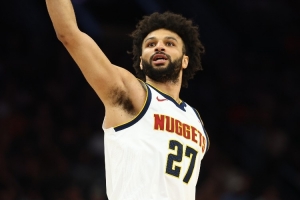 体育资讯4月2日讯 掘金客场挑战爵士,穆雷首节命中半场压哨三分。