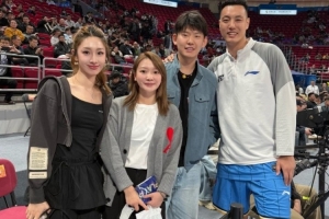 赛后,北京男篮队长翟晓川晒出与中国羽毛球运动员黄雅琼和刘雨辰的合照并写道:“欢迎刘雨辰和雅琼来观看比赛,常来啊❤️”