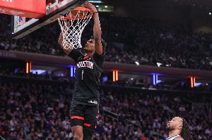 体育资讯3月8日讯 火箭球员阿门在本队击败开拓者的赛后接受媒体采访。