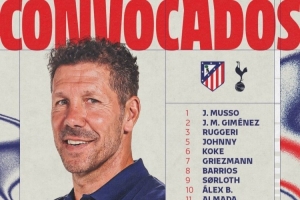 马竞对阵热刺大名单:阿尔瓦雷斯、格列兹曼领衔,门多萨缺席